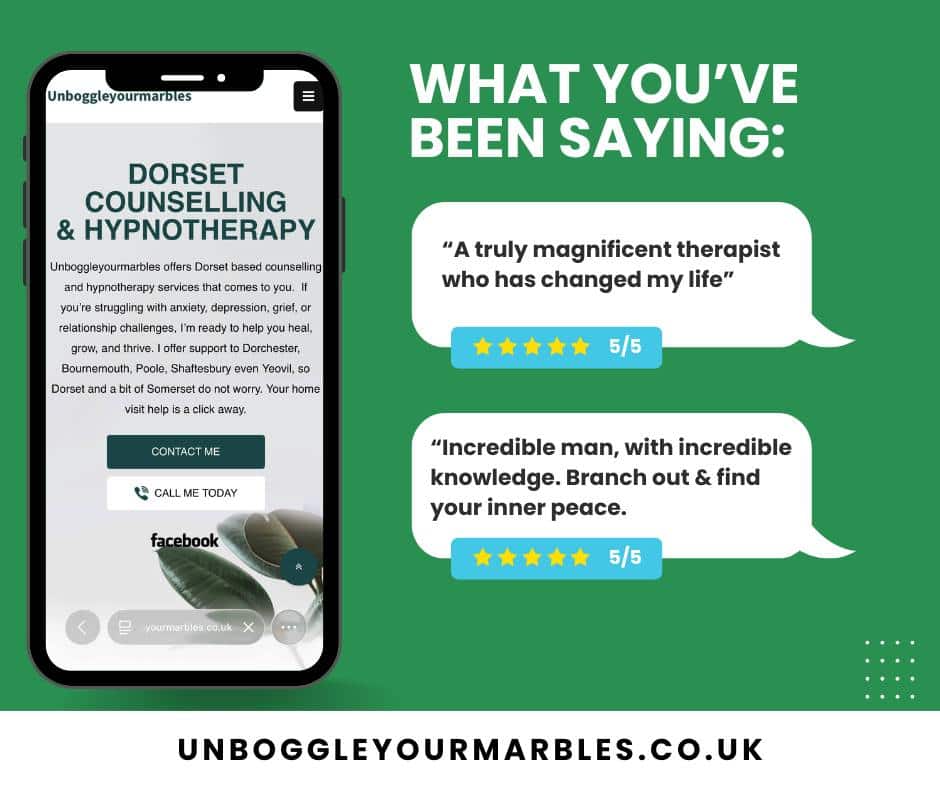 I provide a wide range of hypnotherapy and counselling therapy in Dorset, including relationship counselling, anger management counselling, grief and loss, counselling for anxiety, and overcoming addiction counselling. Whether you’re dealing with emotional blocks, past trauma, or seeking personal growth, you’ll find your safe space to begin your journey. My hypnotherapy and counselling services are tailored to your individual needs, helping you find clarity, confidence, and direction. Lifes better unboggled.